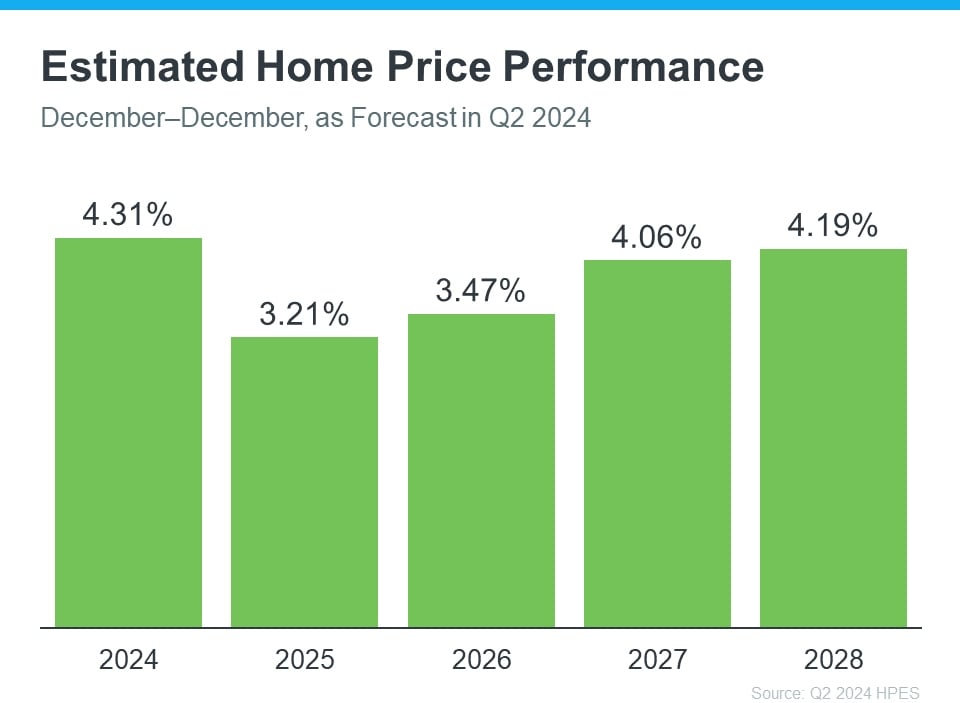 Each quarter, Fannie Mae releases the Home Price Expectations Survey. It asks over one hundred economists, real estate experts, and investment and market strategists what they forecast for home prices over the next five years. In the latest release, experts are projecting home prices will continue to rise through at least 2028 (see the graph below):