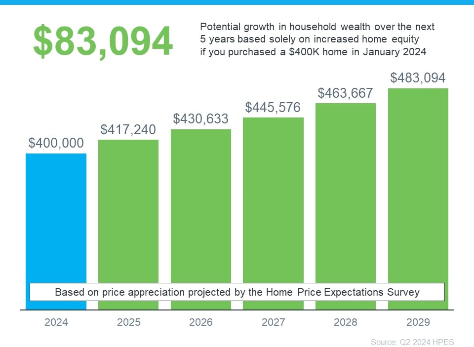 In this example, let’s say you went ahead and bought a $400,000 home at the beginning of this year. Based on the expert forecasts from the HPES, you could gain more than $83,000 in household wealth over the next five years. That’s not a small number.