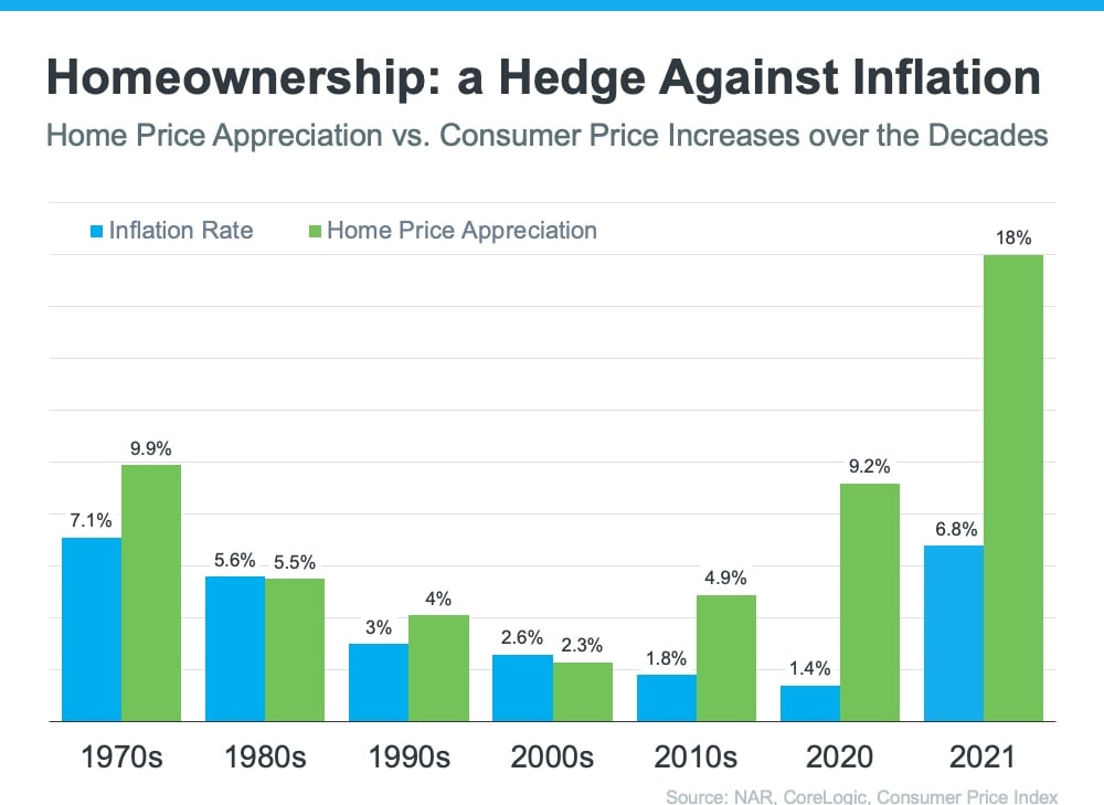 In inflationary times, it’s especially important to invest your money in an asset that traditionally holds or grows in value. The graph below shows how home price appreciation outperformed inflation in most decades going all the way back to the seventies – making homeownership a historically strong hedge against inflation (see graph below):