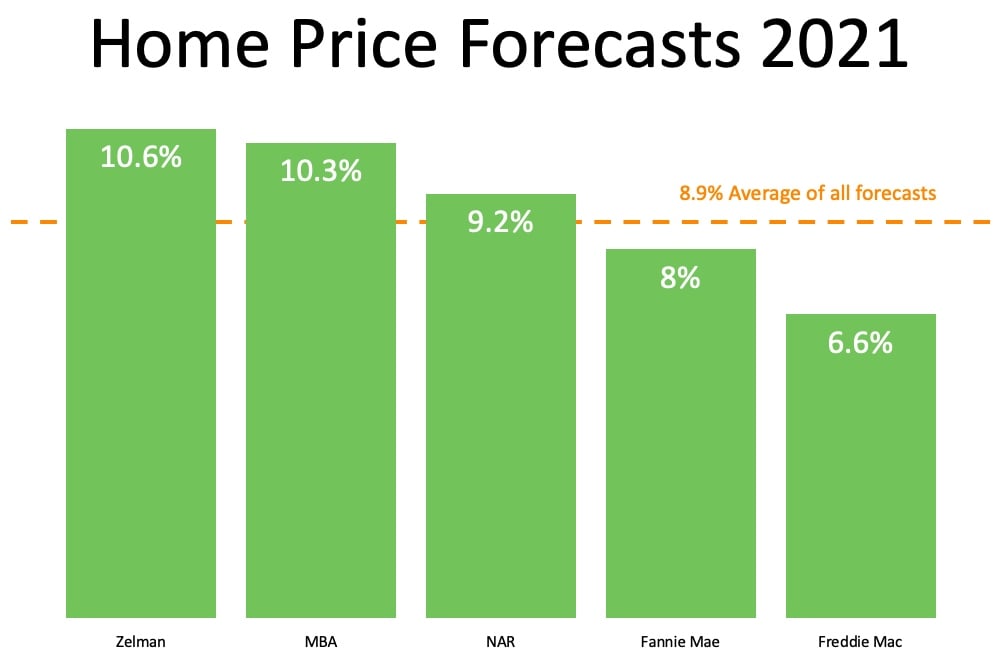 Other experts remain optimistic about home prices, too. The graph below highlights 2021 home price forecasts from multiple industry leaders: